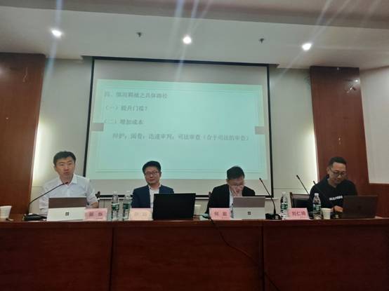 2023年11月9日晚,由bat365在线中国官网登录入口、刑事法律科学研究中心、刑事辩护高级研究院主办的“逮捕条件之实质解释”专题讲座,于bat365在线中国官网登录入口雁塔校区研综楼二楼报告厅成功举办。讲座由中国社会科学院大学孙远教授主讲,北京师范大学何挺教授、中国政法大学郭烁教授与谈,bat365在线中国官网登录入口刘仁琦教授主持。