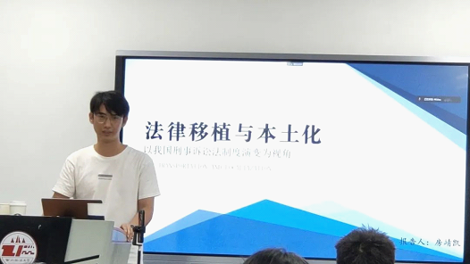 房靖凯同学以本书其中一个章节“刑事诉讼法律移植与本土资源关系的协调”为中心展开,主要探讨法律移植与本土化的关系。